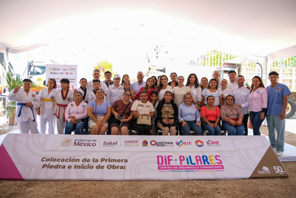 Con el objetivo de fortalecer el desarrollo integral de la población en zonas prioritarias, la gobernadora Mara Lezama Espinosa colocó la primera piedra para la construcción del nuevo Centro de Desarrollo Comunitario DIF-PILARES, acompañada por la presidenta honoraria del Sistema DIF Quintana Roo, Verónica Lezama Espinosa y la presidenta municipal de Benito Juárez, Ana Paty Peralta.