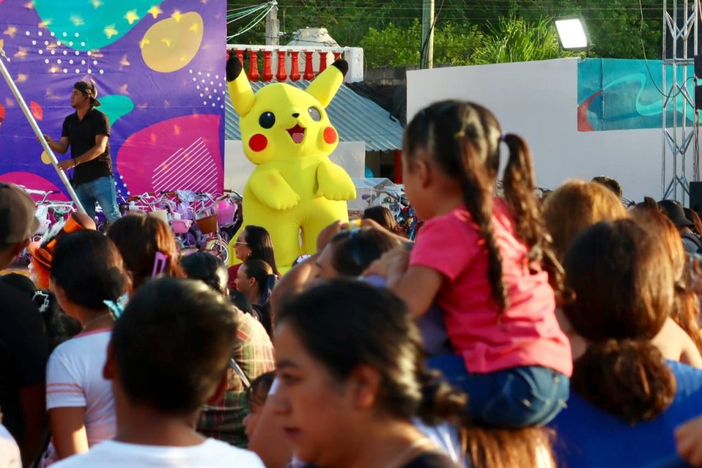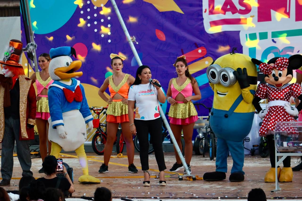 En el parque principal de la Comunidad se reunieron más de mil niñas y niños acompañados de papá y mamá que celebraron en grande con un show de Crazy Kids de música, magia y diversión, dulces, juguetes y la rifa de las bicicletas.