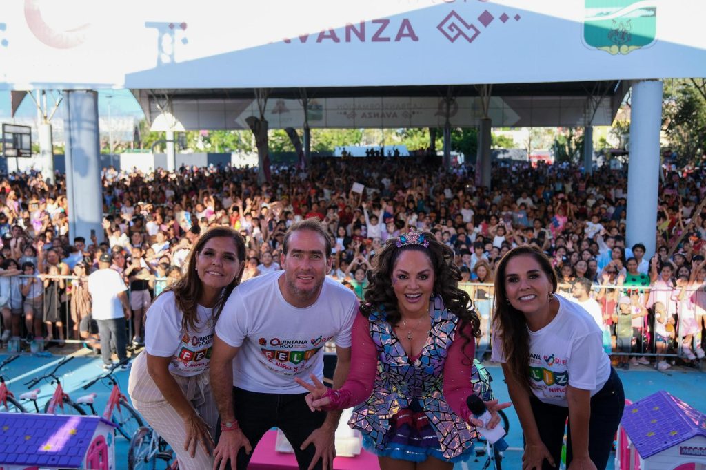 Celebra la gobernadora Mara Lezama Espinosa, acompañada de la presidenta honoraria del Sistema DIF Quintana Roo, Verónica Lezama Espinosa, y el presidente municipal, Diego Castañón, el Día de la Niña y el Niño con el show infantil de Tatiana en la unidad deportiva.
