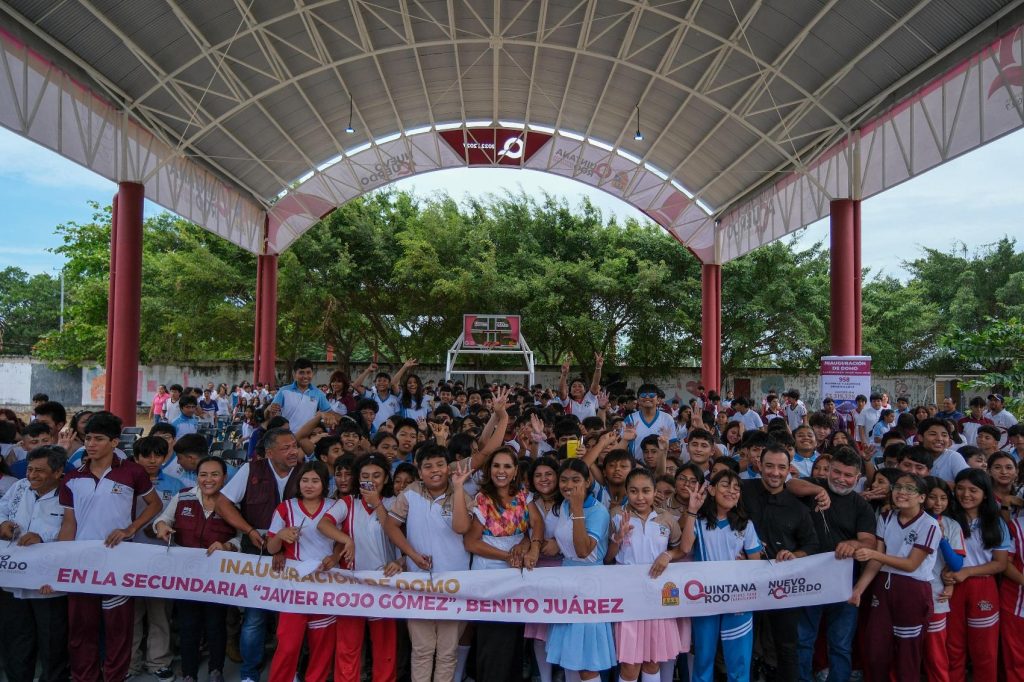 Después de 21 años de espera y en tan solo 4 meses de solicitarlo, las y los alumnos de la escuela secundaria “Javier Rojo Gómez” de Cancún recibieron de la gobernadora Mara Lezama Espinosa su nuevo domo, para tener un espacio que los proteja de las inclemencias del clima.