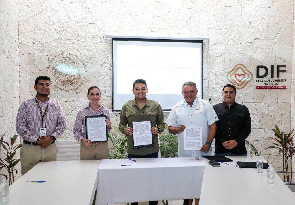 Destacó que, con esta colaboración, se da un paso importante en la construcción de un mejor futuro en Playa del Carmen, se unen fuerzas para que las y los estudiantes de la Universidad Vizcaya puedan realizar su servicio social y sus prácticas profesionales en el DIF.