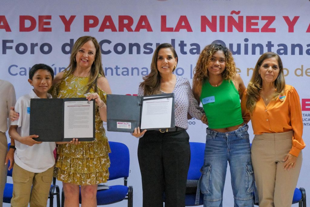 Con la presencia de Silvia Lorena Villavicencio Ayala, secretaria ejecutiva del Sistema Nacional de Protección Integral de Niñas, Niños y Adolescentes, la gobernadora de Quintana Roo expresó que este gobierno humanista, con corazón feminista, trabaja para que la niñez viva libre de violencias.