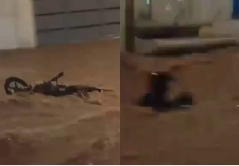 Un hombre a bordo de una motocicleta fue arrastrado por la corriente de un arroyo desbordado en Cabo San Lucas, como consecuencia de las intensas lluvias provocadas por el huracán Lorena en Baja California Sur. El incidente, captado en video y difundido en redes sociales, muestra al motociclista perdiendo el control y cayendo al agua, mientras testigos le gritan desesperadamente.