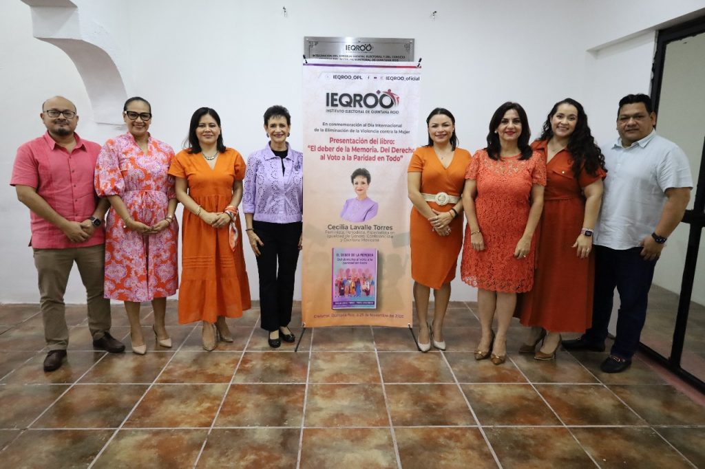 El Instituto Electoral de Quintana Roo (IEQROO), a través de su Comisión de Igualdad y No Discriminación, llevó a cabo la presentación del libro “El deber de la memoria. Del derecho al voto a la paridad de todo”, obra que busca promover y fortalecer los derechos político-electorales de las mujeres para fomentar una mayor participación en la toma de decisiones. El evento se realizó en la sala de sesiones del Instituto, en el marco del Día Internacional de la Eliminación de la Violencia contra la Mujer.