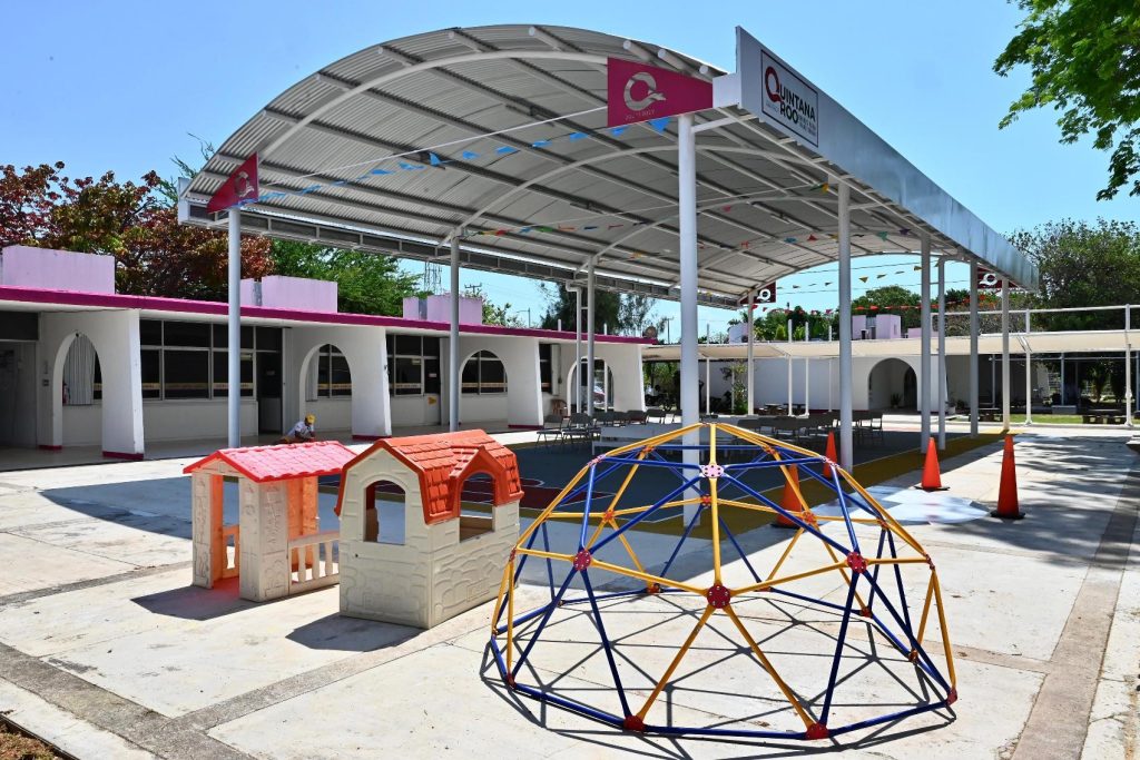 Durante una visita y recorrido por las instalaciones del CENDI 2, acompañada de la presidenta honoraria del DIF Quintana Roo, Verónica Lezama Espinosa, la titular del Ejecutivo dijo ante padres y madres de familia, así como del personal que atiende a la niñez en los CENDI, que ahora tienen un espacio seguro donde podrán jugar, aprender, correr, bailar, hacer ejercicio y convivir sin preocuparse por el sol o por la lluvia.